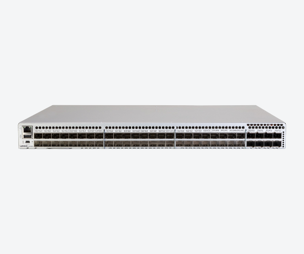 – До 48 портов с автоопределением, поддерживающих приемопередатчики SFP+ 32 Гбит/с или 64 Гбит/с